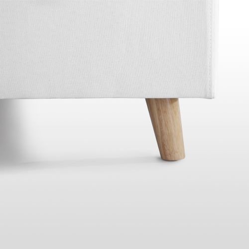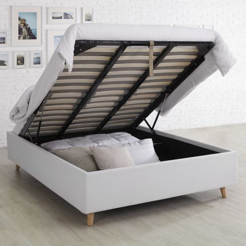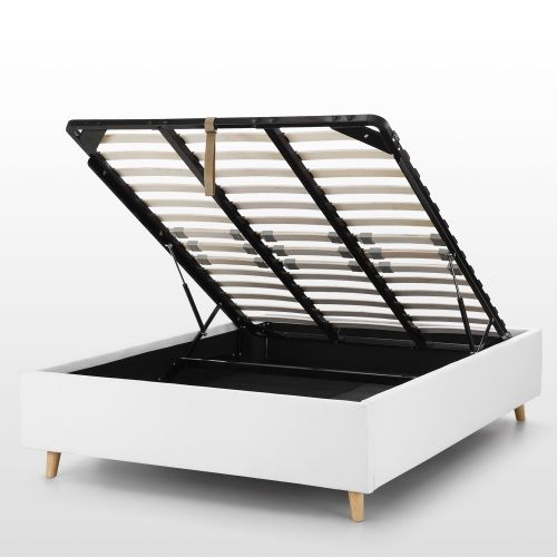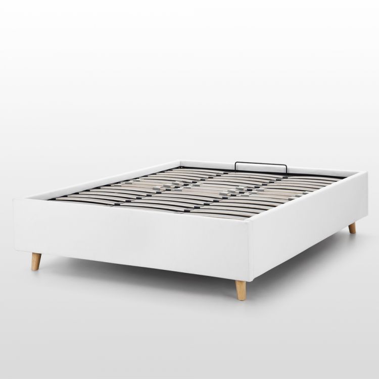 Ich wollte unbedingt ein Kastenbett mit Füßen, ich bin sehr zufrieden mit meinem Kauf. Ich konnte es alleine aufbauen, außer für den letzten Schritt, den Lattenrost auf das Hebelsystem zu schrauben, wo man unbedingt zu zweit sein muss. Ich würde sagen, dass der einzige kleine Fehler, der mir aufgefallen ist, die Stütze am Boden des Bettes ist. Sie liegt auf einer zu kleinen Leiste und ist nur von einer Seite zur anderen gerutscht, da sie auf den Zentimeter genau platziert werden muss. Das Anpassen war eine komplizierte Angelegenheit. Ich habe mich für Weiß entschieden, was sehr schön aussieht, aber der Stoff könnte schmutzig werden. Ich bereue meinen Kauf jedoch überhaupt nicht, es ist ein tolles Bett! Die Pakete wurden in meinem Aufzug das Glück.