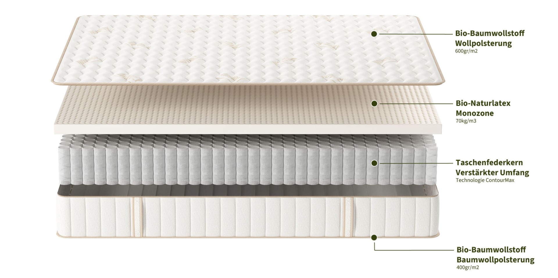 - Material (Latex, Federn, HR-Schaum, Memory-Schaum)